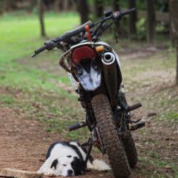 15: perro vigilando una moto