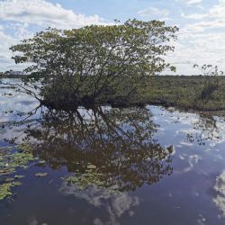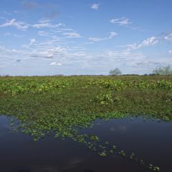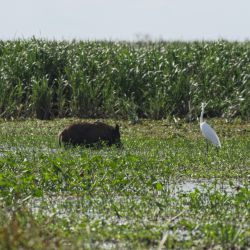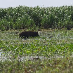 62: aun con yacares cerca esl carpincho nadaba