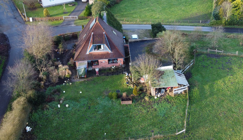 Unser Haus von oben, 1 Flug der Drohne.