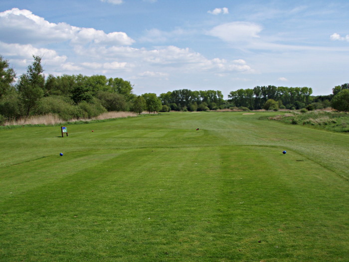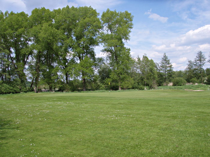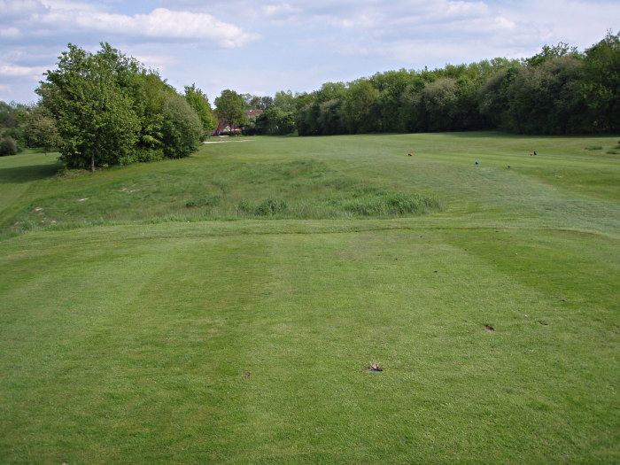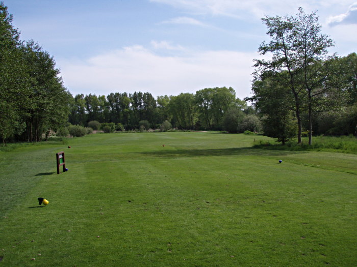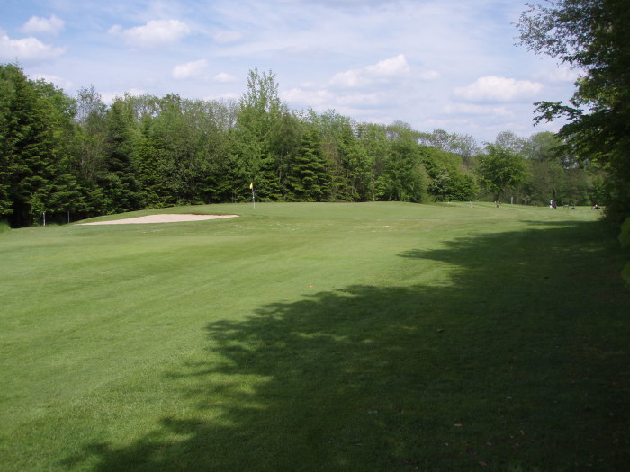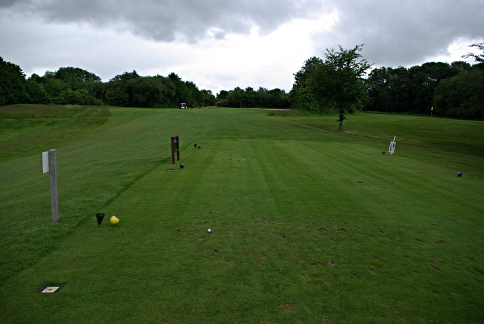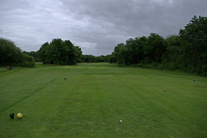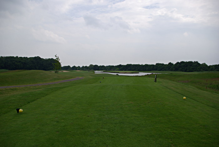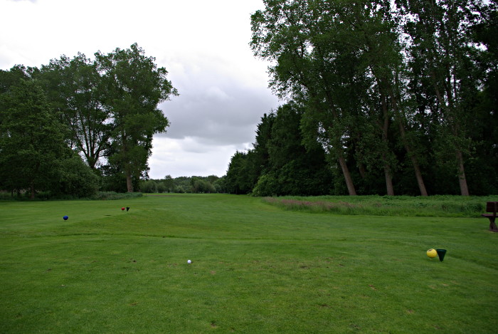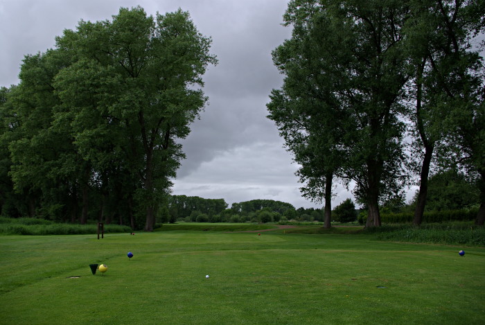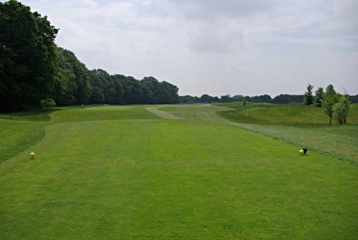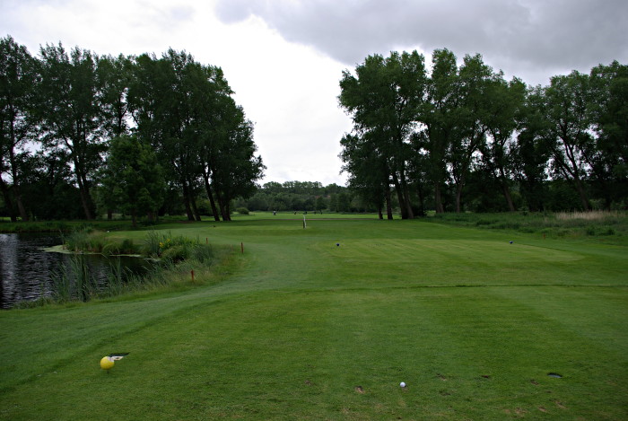 Die Fotos haben keinen künstlerischen Anspruch, kurz vorm Abschlag einfach geknipst und dann nochmal kurz vorm Grün. Immer mit Weitwinkel. Loch 1-9 zuerst mit einer kleinen Olympus, dann 19-27 mit einer Samsung Spiegelreflex mit Pentax Kit Objektiv.