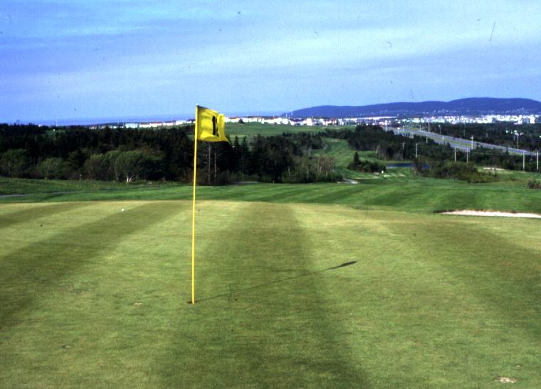 Der Golfplatz liegt auf einem Hügel über der Stadt. Eine schöne Aussicht, aberes kann daher auch ganz schön windig werden. Loch 10 ist ein langes Par 3, aber das Grün befindet sich sehr weit unter dem Abschlag und so reicht doch ein kurzesEisen. Den Bag den Berg hoch schleppen möchte ich aber nicht.