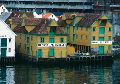 Zwei Bilder vom selben Haus in Bergen, beides mal vom Schiff aus aufgenommen. Einmal 1984 auf dem Weg nach Island, das andere Mal 2006 auf einer Fahrt Tromsø - Deutschland.